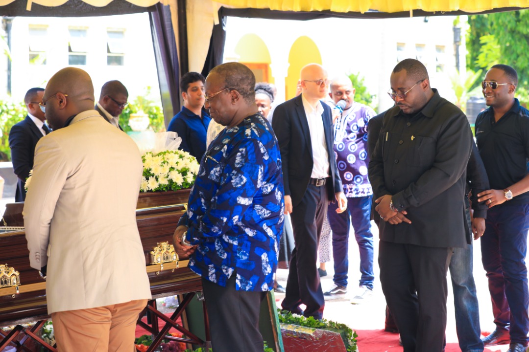Waziri Mstaafu wa Wizara ya Habari, Utamaduni Sanaa na Michezo Dkt.Harrison Mwakyembe akiaga mwili wa aliyekuwa Katibu Mtendaji Baraza la Sanaa Tanzania Godfrey Mngereza leo Desemba 29, 2020 Jijini Dar es Salaam katika Uwanja wa Karimjee.