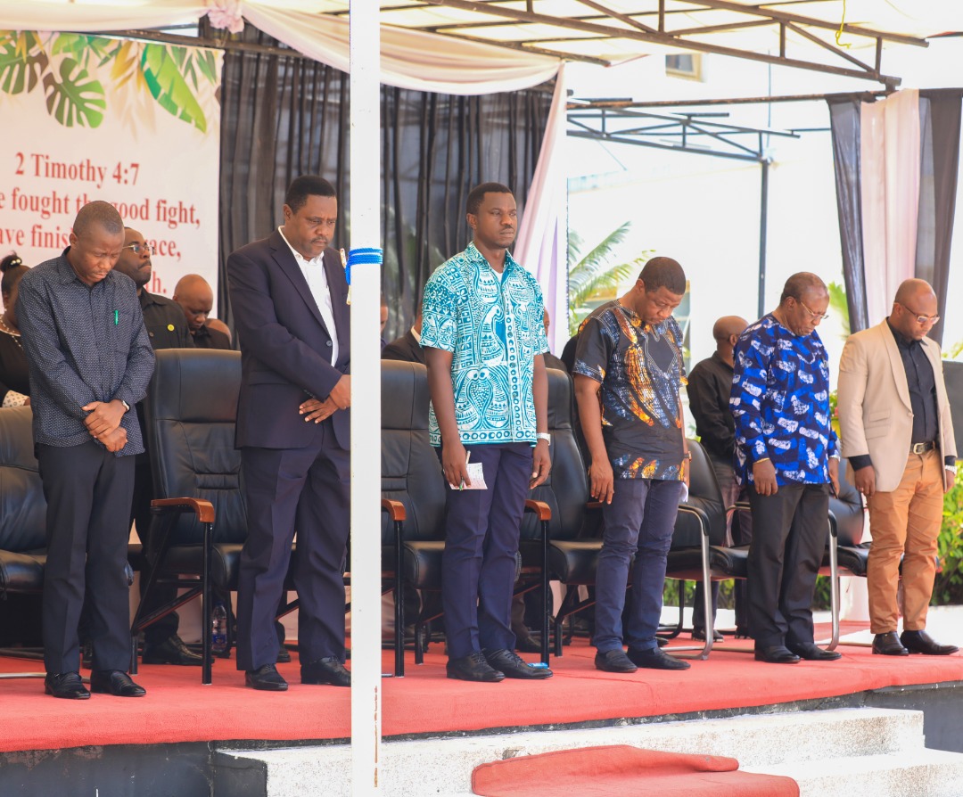 Waziri wa Habari, Utamaduni Sanaa na Michezo Mhe.Innocent Bashungwa (watatu kushoto) akiwa katika picha ya pamoja viongozi mbalimbali wakati wa ibada ya kuaga mwili wa wa aliyekuwa Katibu Mtendaji Baraza la Sanaa Tanzania Godfrey Mngereza leo Desemba 29,2020 Jijini Dar es Salaam katika Uwanja wa Karimjee, wa kwanza kushoto ni Katibu Mwenezi wa Chama cha Mapinduzi Tanzania Humphery Polepole, na wapili ni Mkuu wa Mkoa wa Da r es Salaam.