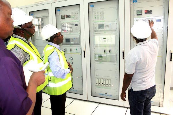Ziara ikiendelea kwenye kituo cha kupokea umeme, kusambaza, na kupoza katika eneo la Bulyanhulu.