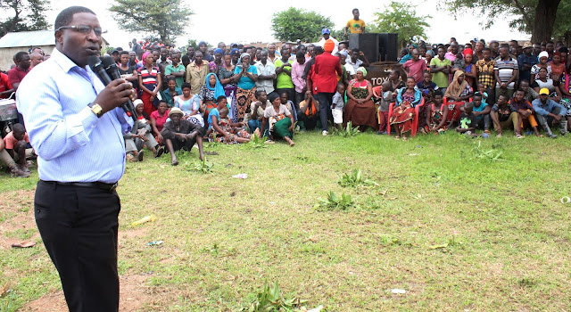 Mwenyekiti wa CCM Wilaya ya Kahama Thomas Muyonga, akizungumza na wachimbaji wadogo wa Nyangalata.