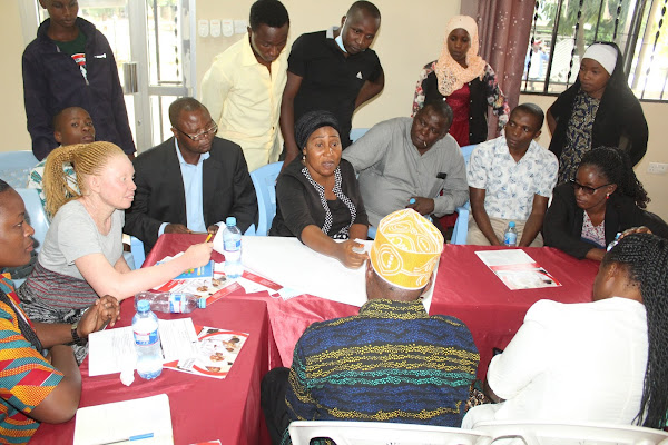 Mwenyekiti wa Shirikisho wa vyama vya watu wenye ulemavu mkoani Shinyanga (SHIVYAWATA), Richard Mpongo, akichangia mada kwenye Mdahalo huo.
