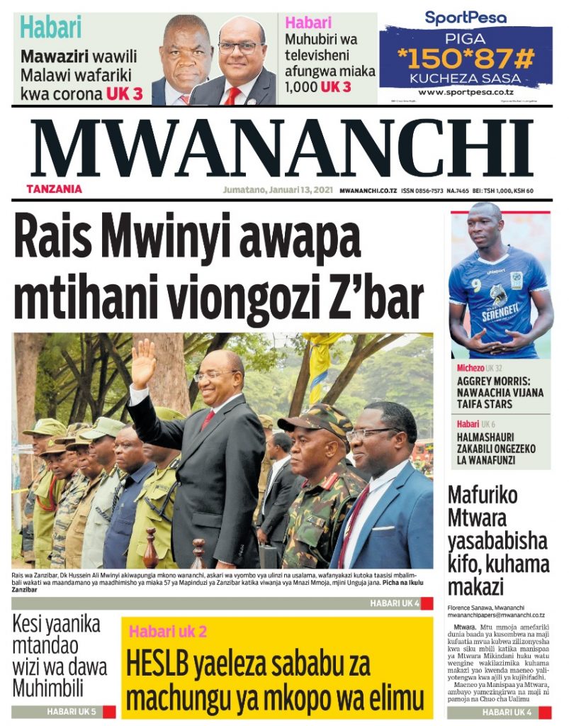 MagazetiPITIA VICHWA VYA HABARI KATIKA MAGAZETI YA LEO JANUARY 13,2021 Last updated: 2021/01/13 at 3:52 AM Alex Sonna 5 years ago Share SHARE Alex Sonna January 13, 2021 January 13, 2021 Share this Article Facebook Twitter Email Print Previous Article MKANDARASI WA REA 3 MTWARA AAGIZWA KUKAMILISHA MRADI Next Article KUWE NA UTARATIBU MAALUM WA KUGAWA UMETA KWA WANANCHI