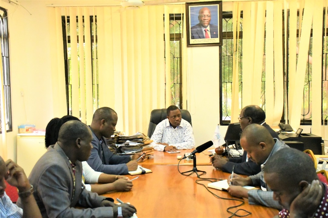 Mkuu wa Wilaya ya Mvomero Mhe. Albinius Mugonya (kulia) akimkaribisha ofisini kwake Katibu Mkuu Wizara ya Kilimo Bw.Gerald Kusaya ( kushoto) leo alipoanza ziara ya kikazi wilaya ya Mvomero kukagua skimu za umwagiliaji chini ya mradi wa ERPP.