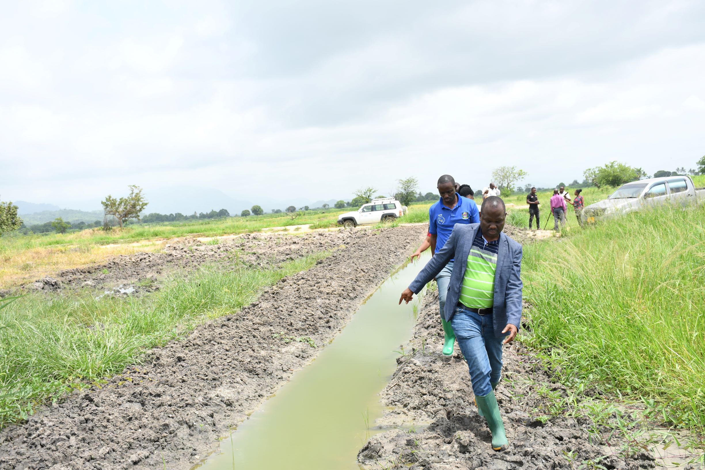Katibu Mkuu huyo ameagua mashamba ya mpunga kijiji cha Kagugu na kuwaelekeza maafisa kilimo wa halmashauri kuwafundisha wakulima kilimo cha kisasa ili mradi wa umwagiliaji uwasaidie kuongeza tija kwa kutumia eneo dogo kisasa.