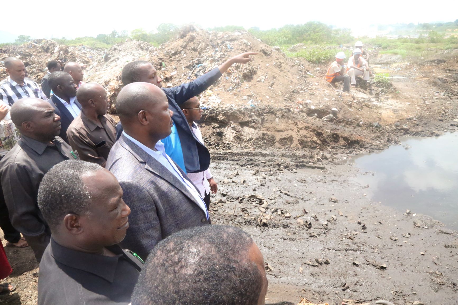Naibu Waziri Ofisi ya Makamu wa Rais (Muungano na Mazingira) Mhe. Mwita Waitara akiangalia hali ya mazingira katika dampo la Manispaa ya Morogoro lililopo eneo la Viwandani alipofanya ziara ya kikazi ambapo alielekeza lilejengwe dampo la kisasa katika eneo lingine.
