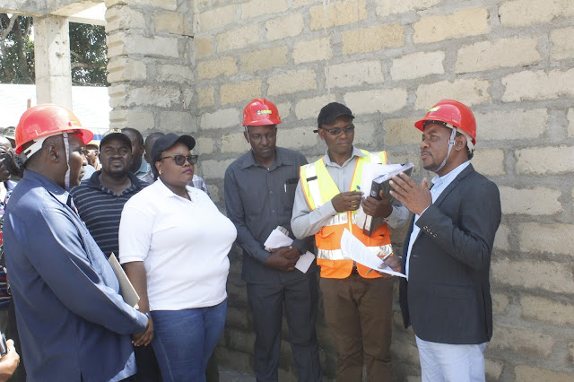 wa Elimu,Sayansi na Teknolojia Omary Kipanga katikati akikagua ujenzi wa