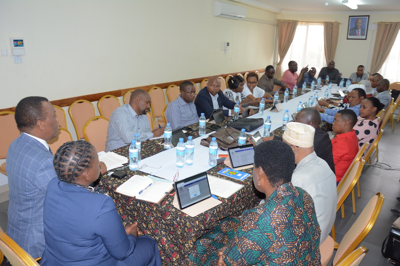 Wajumbe wa Kamati ya Kudumu ya Bunge ya Ardhi, Maliasili na Utalii wakiwa katika kikao cha kwanza na Viongozi kutoka Wizara ya Ardhi, Nyumba na Maendeleo ya Makazi katika kumbi za Bunge jijini