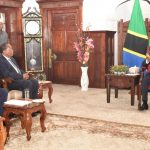 RAIS wa Zanzibar na Mwenyekiti wa Baraza la Mapinduzi Mhe.Dk.Hussein Ali Mwinyi akikabidhiwa picha ikionesha mandhari ya Mji Mkongwe wa Zanzibar na Mwenyekiti wa Jumuiya ya Wakurugenzi Watendaji wa Makampuni Binafsi Tanzania.Bw.Dino Stengel, baada ya kumaliza mazungumzo yao yaliofanyika katika ukumbi wa Ikulu Jijini Zanzibar.(Picha na Ikulu)