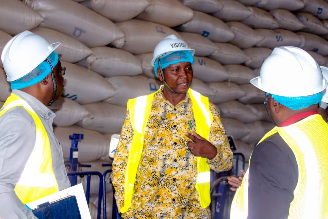 Waziri wa Kilimo, Prof Adolf Mkenda akikagua uzalishaji wa mafuta katika kiwanda cha Pyxus kilichopo jijini Dodoma alipokitembelea leo Januari 22,2021.