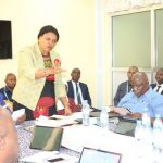 Naibu Waziri wa Viwanda na Biashara Mhe. Exaud Kigahe(Mb) akitembelea banda ya maonesho ya bidhaa za Mufindi Paper wazalishaji wa karatasi na vifungashio kwenye uzinduzi wa mwongozo wa uwekezaji wa mkoa wa Iringa uliofanyika katika Chuo kikuu cha Mkwawa mkoani Iringa, Leo Januari 23, 2020