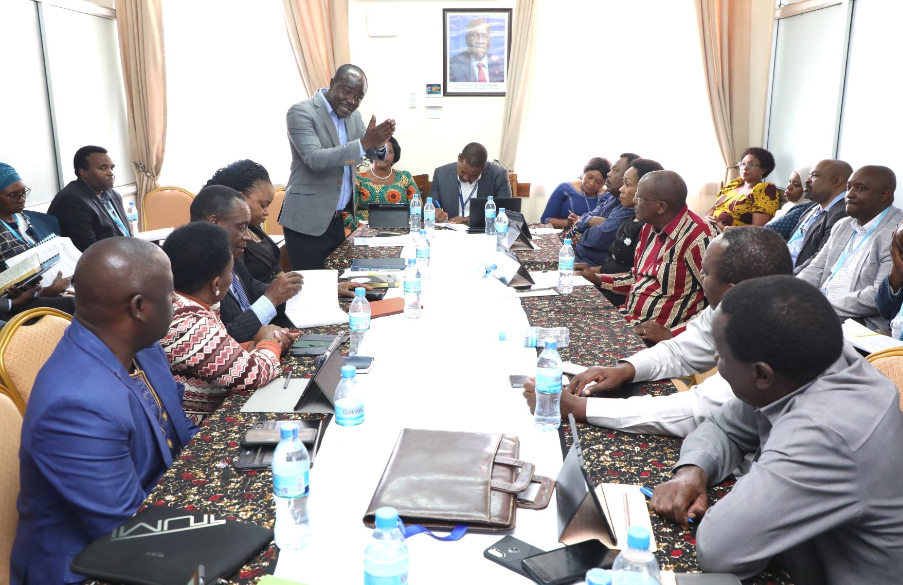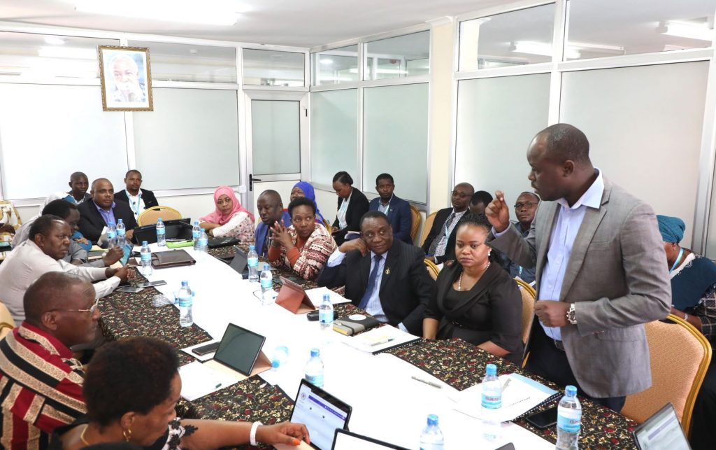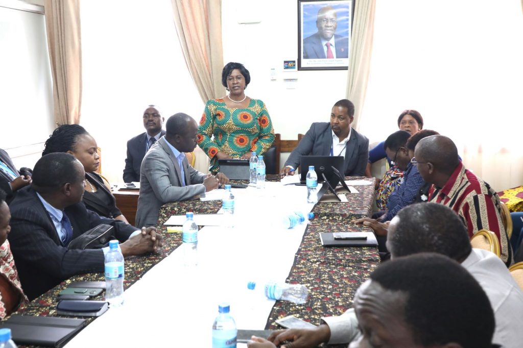 Mwenyekiti wa Kamati ya Kudumu ya Bunge ya Kilimo, Mifugo na Maji, Mhe. Dkt. Christine Ishengoma akiongoza kikao cha pamoja cha Kamati ya Kudumu ya Bunge ya Kilimo, Mifugo na Maji na viongozi kutoka taasisi za Wizara ya Maji wakati wa kupokea maelezo kuhusu maudhui ya Sheria za usimamizi wa rasilimali za Maji, huduma za Maji Safi na Usafi wa mazingira katika ofisi za Bunge Jijini Dodoma. Kulia kwake ni Waziri wa Maji, Mhe. Jumaa Aweso, Naibu Waziri wa Maji, Mhe. Mhandisi Maryprisca Mahundi (wa pili kulia)