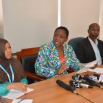 Meneja Mwandamizi wa Kitengo cha Biashara ya Kadi Benki ya NMB – Lupia Matta (katikati), akizungumza wakati wa droo ya nane ya Kampeni ya NMB MastaBATA ‘Siyo Kikawaida’ inayohamasisha matumizi na manunuzi kwa njia ya kadi, iliyofanyika Makao Makuu ya Benki hiyo jijini Dar es Salaam. Kushoto ni Ofisa kutoka Bodi ya Michezo ya Kubahatisha Tanzania (GBT) – Upendo Albert na kulia ni Ofisa Huduma kwa Wateja NMB – Yvette Nkhoma.