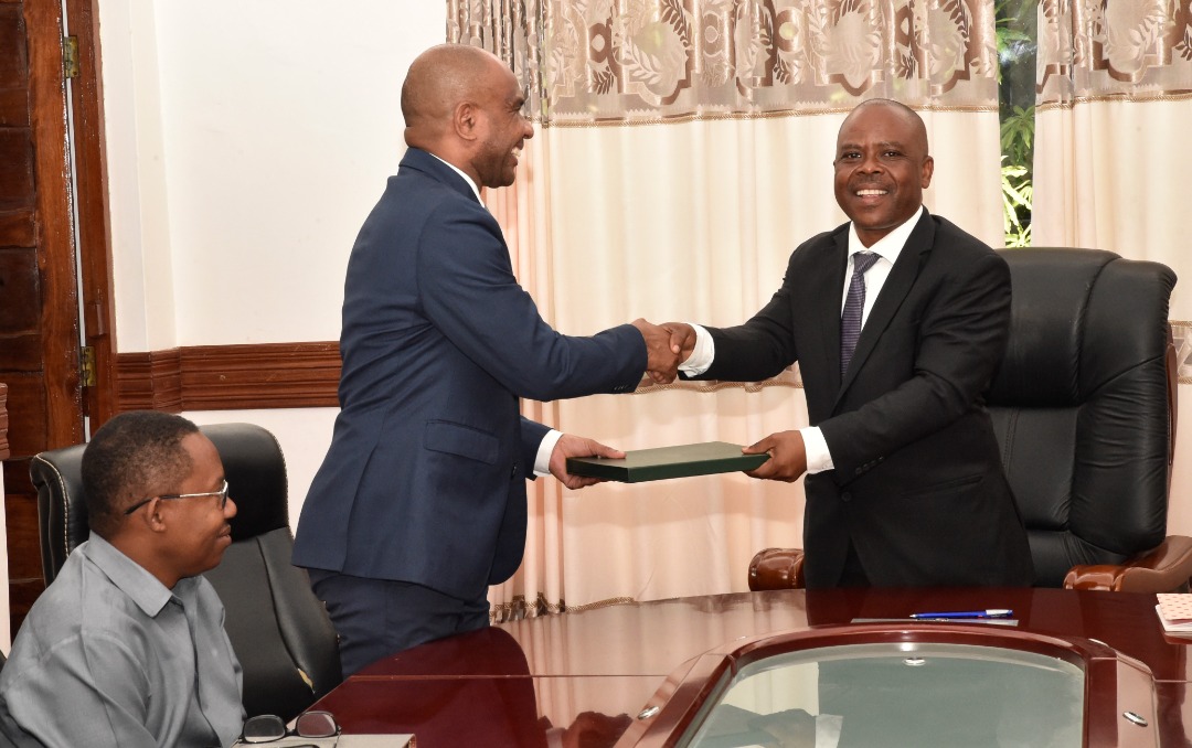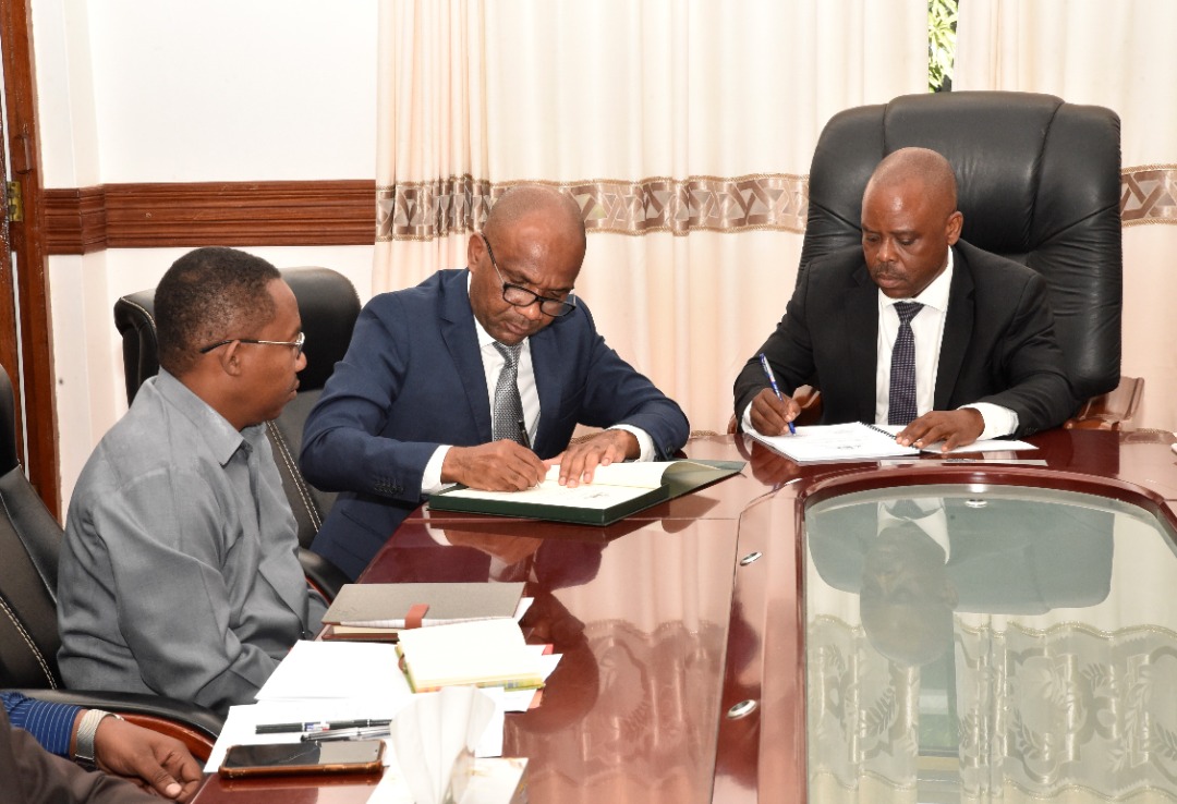 KATIBU Mkuu Afisi ya Rais Kazi Uchumi na Uwekezaji Zanzibar Ndg.Mussa Haji Ali akisaini hati ya makabidhiano ya Ofisi na aliyekuwa Katibu Mkuu Ofisi ya Rais Ikulu Ndg, Salum Maulid Salum (kushoto) makabidhiano hayo yamefanyika katika Ofisi ya Katibu Mkuu Ikulu Jijini Zanzibar. (Picha na Ikulu)