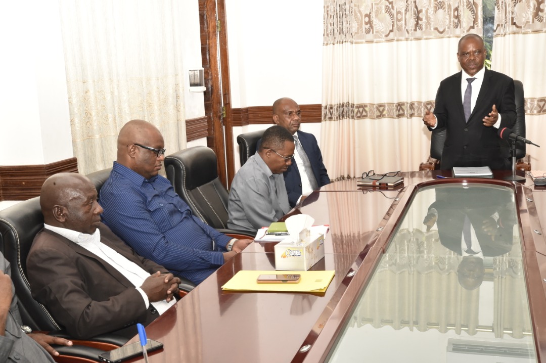 KATIBU Mkuu Afisi ya Rais Kazi Uchumi na Uwekezaji Zanzibar Ndg. Mussa Haji Ali akizungumza na Wafanyakazi wa Afisi ya faragha wakati wa hafla ya kukabidhiwa ya Ofisi na aliyekuwa Katibu Mkuu wa Ofisi Rais Ikulu Ndg. Salum Maulid Salum, hafla hiyo imefanyika katika ukumbi wa Afisi ya Katibu Mkuu Ikulu Jijini Zanzibar.(Picha na Ikulu)