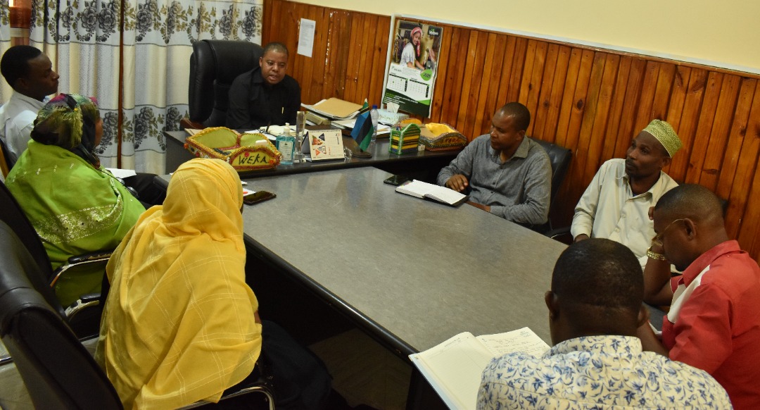 Wanaume mawakala wa mabadiliko, maafisa wa TAMWA Zanzibar wakiwa katika kikao na Mkuu wa Mkoa wa Kusini Pemba Mattar Zahor Massoud ofisini kwake mapema February 03 2021