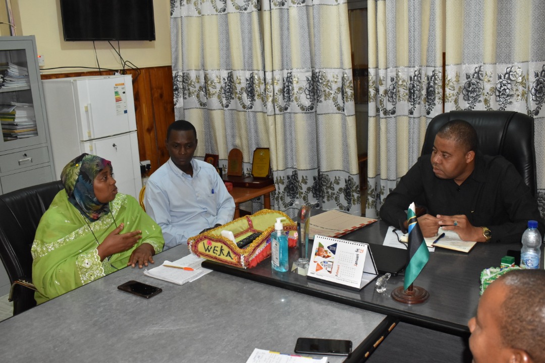 Wanaume mawakala wa mabadiliko, maafisa wa TAMWA Zanzibar wakiwa katika kikao na Mkuu wa Mkoa wa Kusini Pemba Mattar Zahor Massoud ofisini kwake mapema February 03 2021