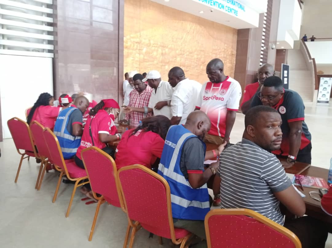 Wanachama wa Klabu ya Simba wakijisajili mapema leo kabla ya kuingia kwenye mkutano wa uchaguzi wa kujaza nafasi ya mwenyekiti wa klabu hiyo.