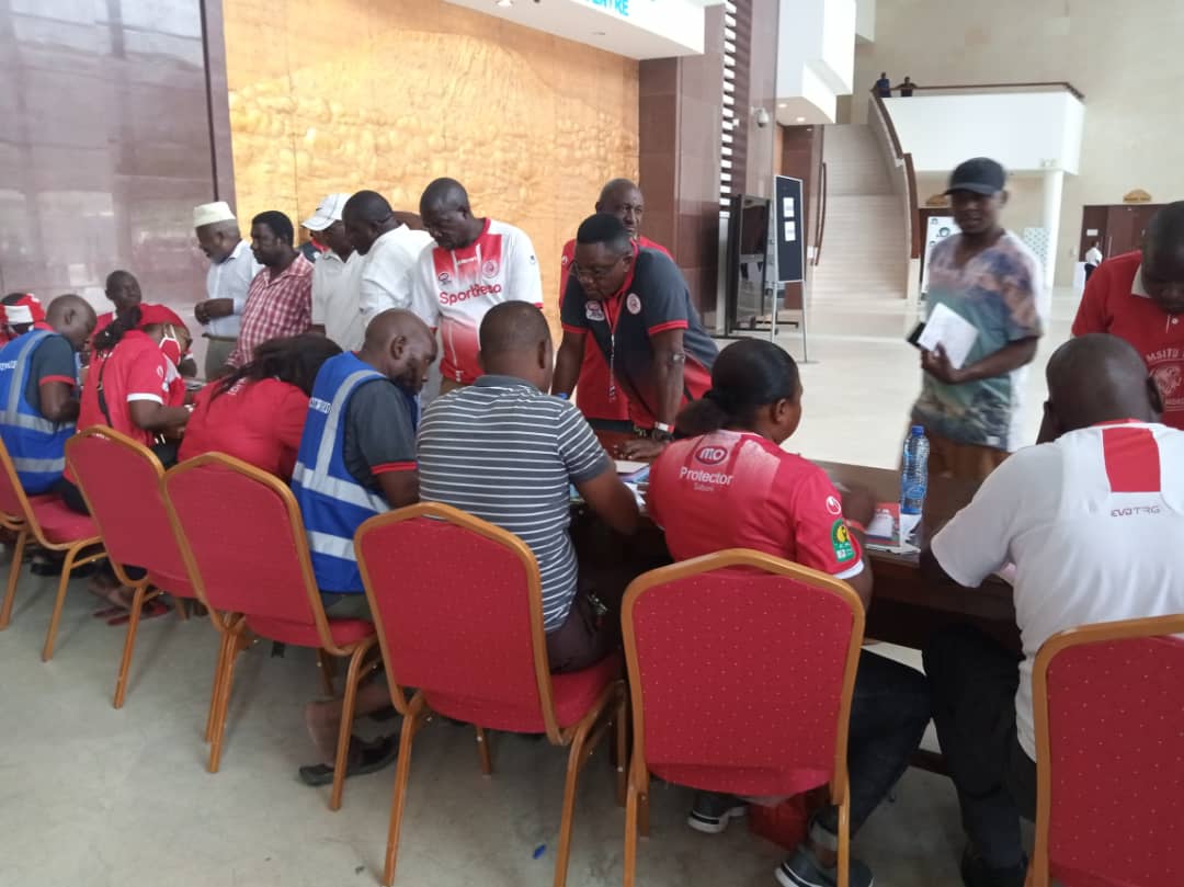 Wanachama wa Klabu ya Simba wakijisajili mapema leo kabla ya kuingia kwenye mkutano wa uchaguzi wa kujaza nafasi ya mwenyekiti wa klabu hiyo.