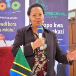 Makamu Mwenyekiti wa Kamati ya Uongozi ya Mpango wa Kurasimishara Rasilimali na Biashara za Wanyonge Tanzania (MKURABITA) Bi Immaculata Senje akieleza jambo kabla ya uzinduzi wa kituo jumuishi cha biashara kilichopo eneo la Darajani Unguja, Zanzibar.