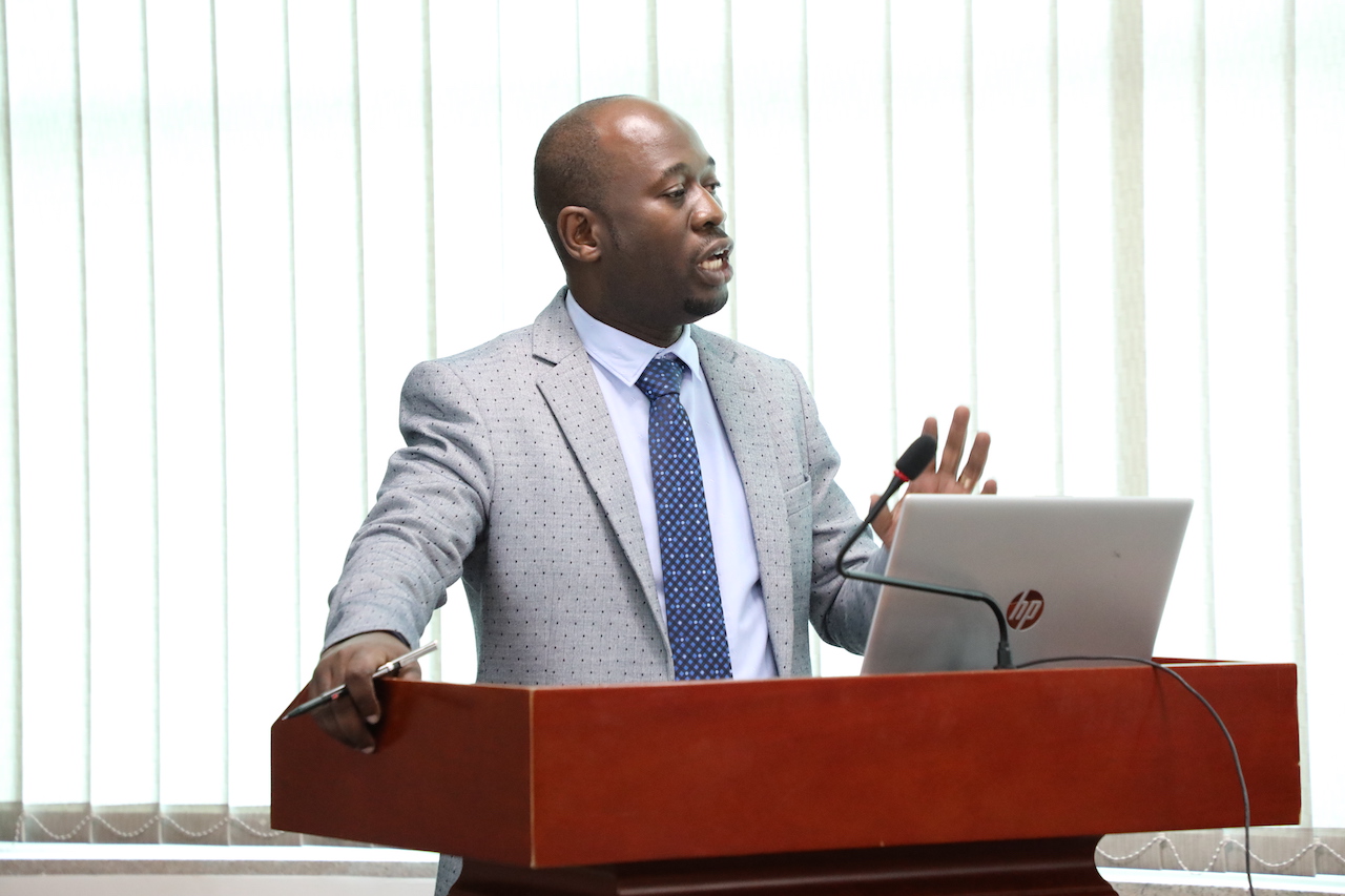 Mkurugenzi wa Idara ya TEHAMA wa Wizara ya Mawasiliano na Teknolojia ya Habari, Mulembwa Munaku akitoa wasilisho la Mradi wa Tanzania ya Kidijitali kwa wadau kutoka katika jamii za pembezoni katika kikao cha majadiliano baina ya Wizara hiyo na wadau hao kilichofanyika, jijini Dar es Salaam