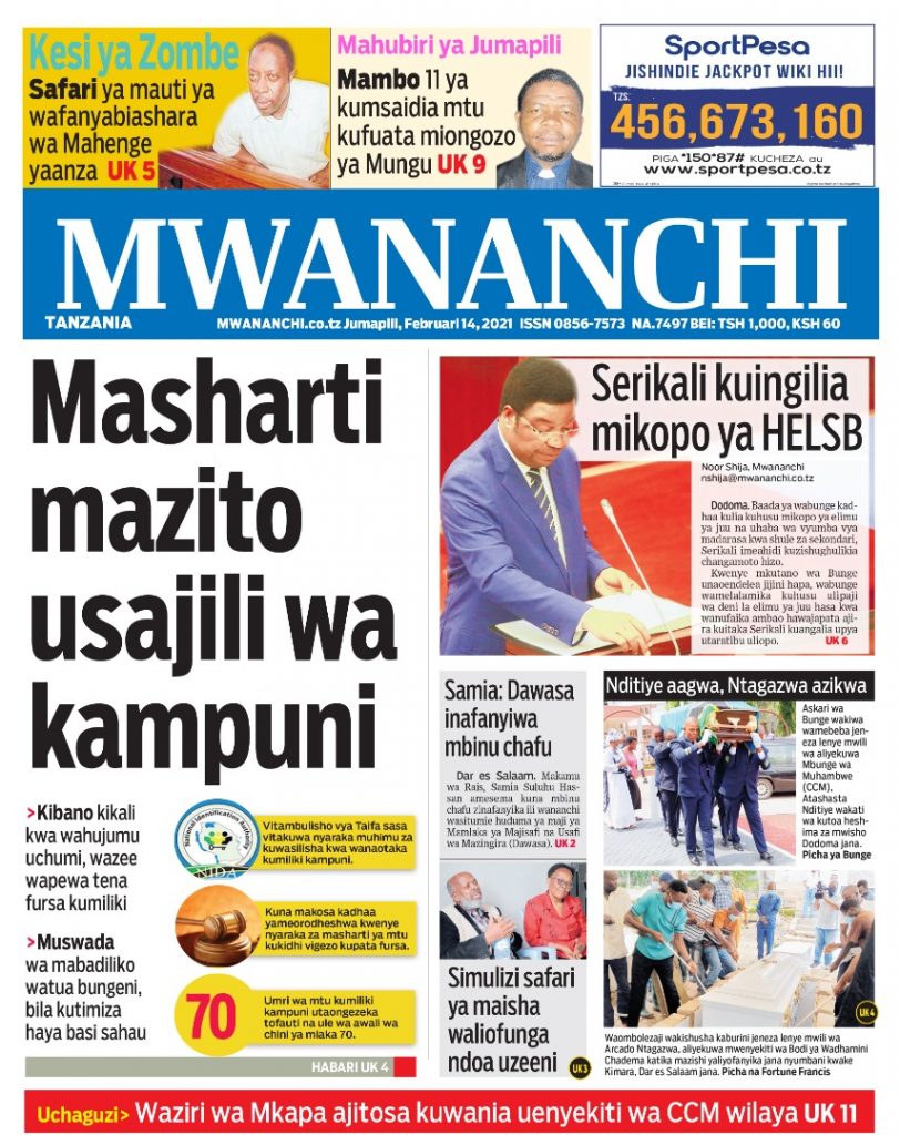 MagazetiPITIA VICHWA VYA HABARI KATIKA MAGAZETI YA LEO FEBRUARY 14,2021 Last updated: 2021/02/14 at 4:08 AM Alex Sonna 5 years ago Share SHARE Alex Sonna February 14, 2021 February 14, 2021 Share this Article Facebook Twitter Email Print Previous Article YANGA YAPUNGUZWA KASI MBIO ZA UBINGWA LIGI KUU VODACOM Next Article VYAMA PINZANI NA VIJANA WAASWA KUJIUNGA NA CHUO CHA UONGOZI CHA MWL.NYERERE KIBAHA KUJIFUNZA MAADILI NA UZALENDO-ANNA
