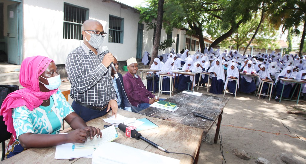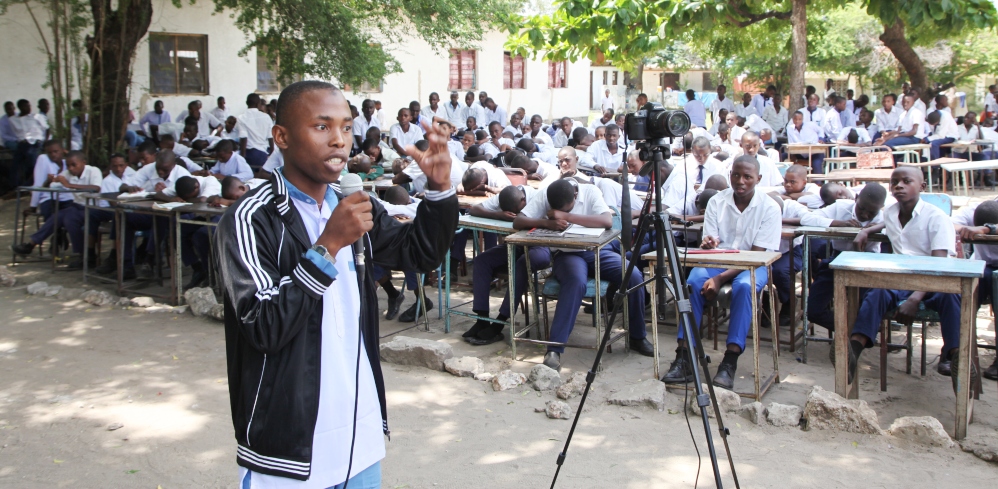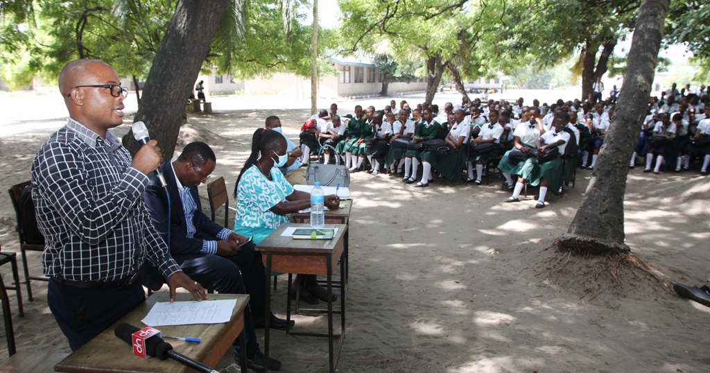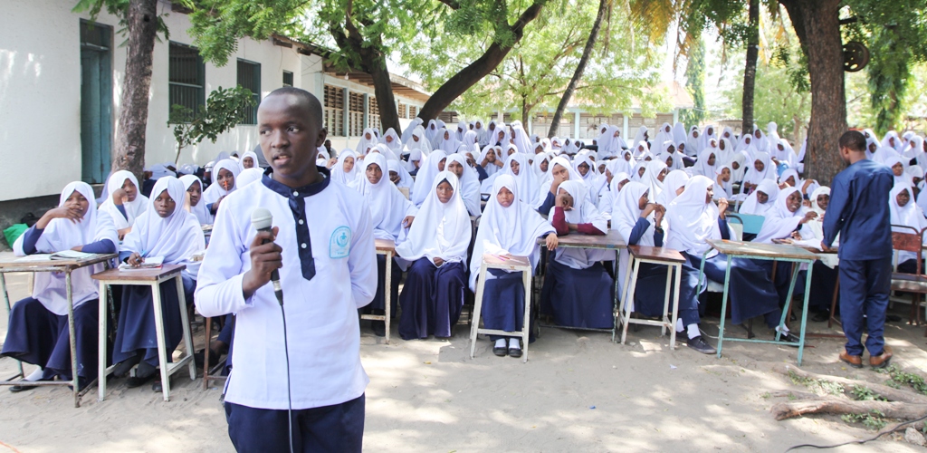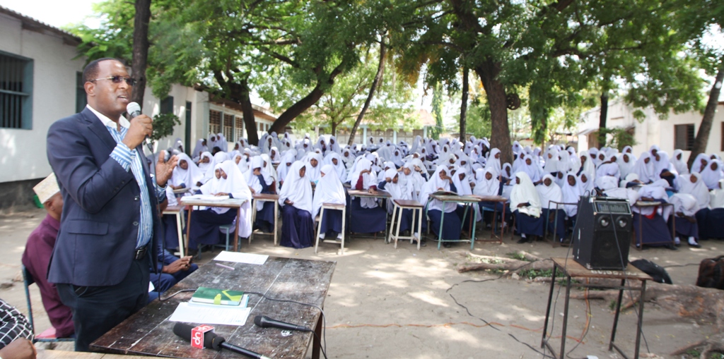 Ofisa Uhusiano wa AQRB, Atugonza Samwel, akihamasisha wanafunzi Shule ya Sekondari Kinondoni Muslim. |