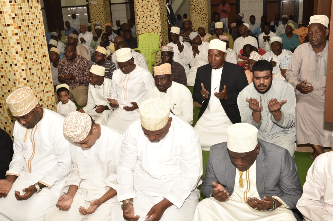WAUMINI wa Kiislam wakiitikia dua ikisomwa na Mufti Mkuu wa Zanzibar Sheikh Saleh Omar Kabi (hayupo pichani) iliofanyika katika Msikiti wa Miembeni Wilaya ya Mjini Unguja.(Picha na Ikulu)