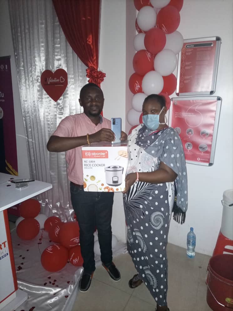 “Mshindi wa kwanza ni Nashon mwenye vocha namba 00827 na namba yake ya simu ni……… huuyu amejishindiia kwenda Valentin dinner na ampendaye katika hotel nzuri, washindi wengine wawili ni Happy vocha namba yake ya bahati nasibu ni 00710 na namba yake ya simuu ni 07547507… na Zawadi ambaye vocha namba yake ni 00399 na namba yake ya simu ni 07733128…hawa wamejishindia rice cooker kila mmoja pamoja na vitu vingine vya matumizi ya nyumbani” alisema Mapunda.