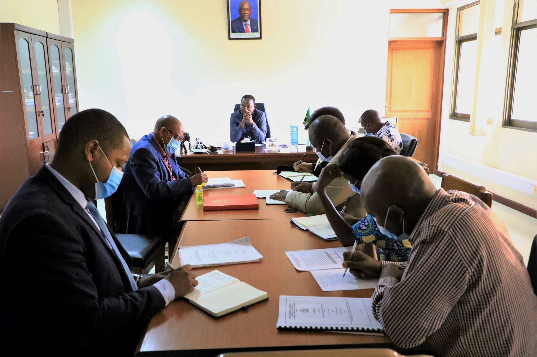 Waziri wa Mambo ya Ndani ya Nchi, George Simbachawene (katikati), akizungumza na Watendaji Wakuu wa Mamlaka ya Vitambulisho vya Taifa (NIDA) kuhusu masuala mbalimbali ya utendaji kazi. Kikao hicho kilifanyika ofisi ndogo ya Wizara, jijini Dar es Salaam, leo. Wapili kushoto ni Mkurugenzi Mkuu wa NIDA, Dk. Anorld Kihaule. Picha na Wizara ya Mambo ya Ndani ya Nchi.