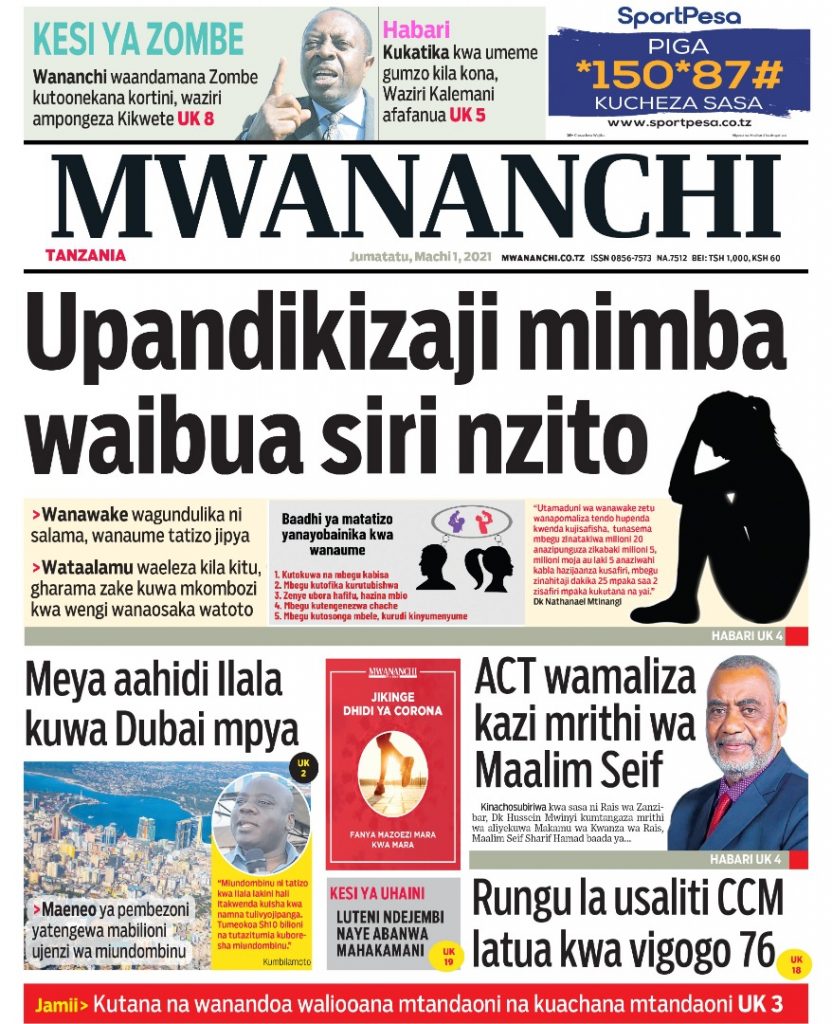 MagazetiPITIA VICHWA VYA HABARI KATIKA MAGAZETI YA LEO MARCH 1,2021 Last updated: 2021/03/01 at 3:20 AM Alex Sonna 5 years ago Share SHARE Alex Sonna March 1, 2021 March 1, 2021 Share this Article Facebook Twitter Email Print Previous Article Helium Yaibuka Kikao cha Bodi ya Barabara Rukwa na kuibua gumzo. Next Article ASKOFU MACHIMU AZINDUA WIMBO WA TANZANIA YA AMANI AKIONGOZA MAOMBI DHIDI YA CORONA