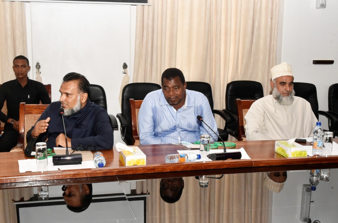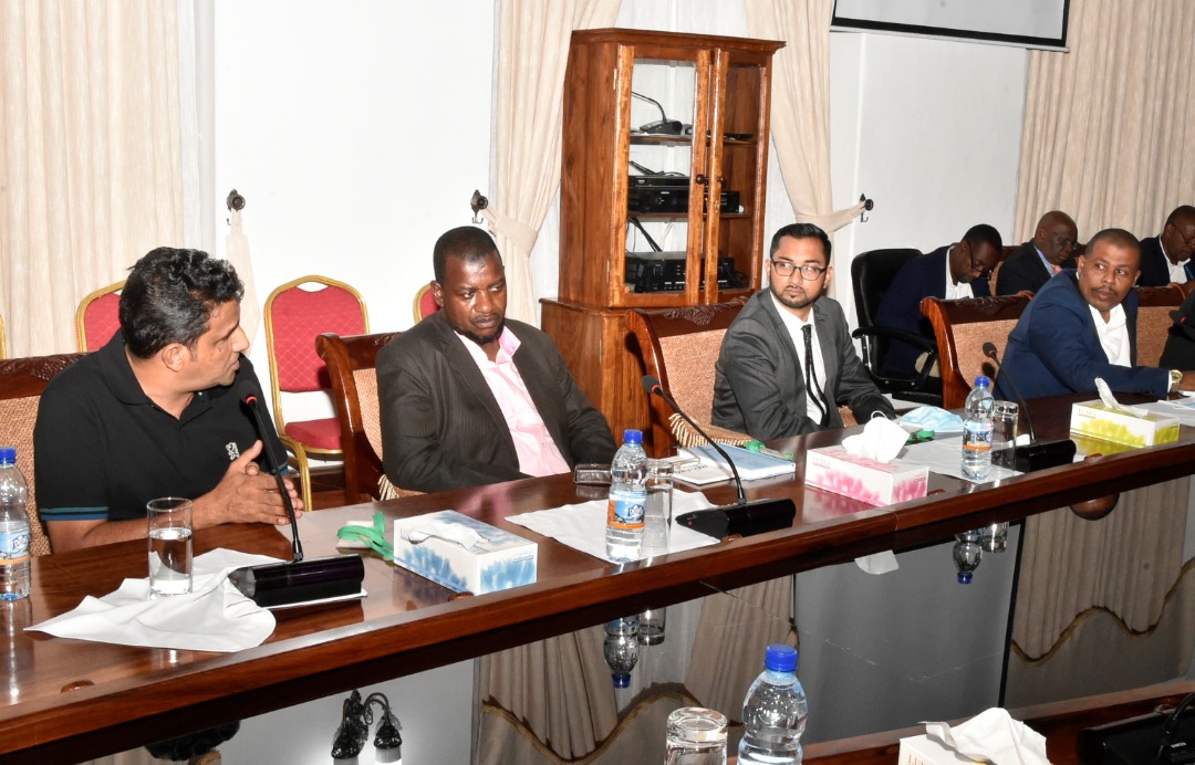 MFANYABIASHARA wa Kampuni ya Bopar Enterprises Zanzibar Bw. Said Nassir Bopar akizungumza na kuchangia wakati wa mkutano na Rais wa Zanzibar na Mwenyekiti wa Baraza la Mapinduzi Mhe.Dk. Hussein Ali Mwinyi (hayupo pichani) na kuwataka Wafanyabiashara kuwa na ushirikiani na katika biashara zao.(Picha na Ikulu)