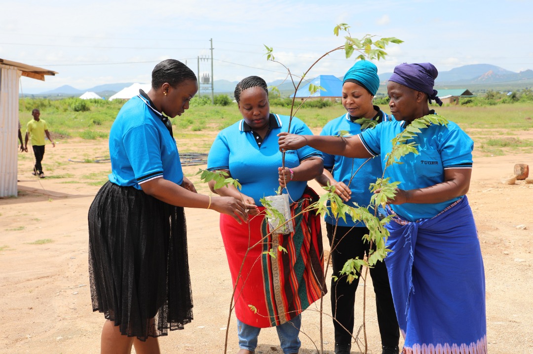 Mkurugenzi Msaidizi wa Rasilimali Watu wa Wizara ya Fedha na Mipango, Bi. Gisela Mugumira (kushoto) na Mwenyekiti wa Kamati ya Wanawake wa Chama cha Wafanyakazi wa Serikali Kuu na Afya (TUGHE) Tawi la Wizara ya Fedha na Mipango, Bi. Agatha Madalle (kulia) wakijadiliana jambo na baadhi ya wajumbe wa TUGHE wakati wa zoezi la upandaji miti katika ofisi za Makao Makuu ya Wizara hiyo, Mtumba jijini Dodoma kwa ajili ya kutunza mazingira ikiwa ni maandalizi ya kusherehekea Maadhimisho ya Siku ya Wanawake duniani.