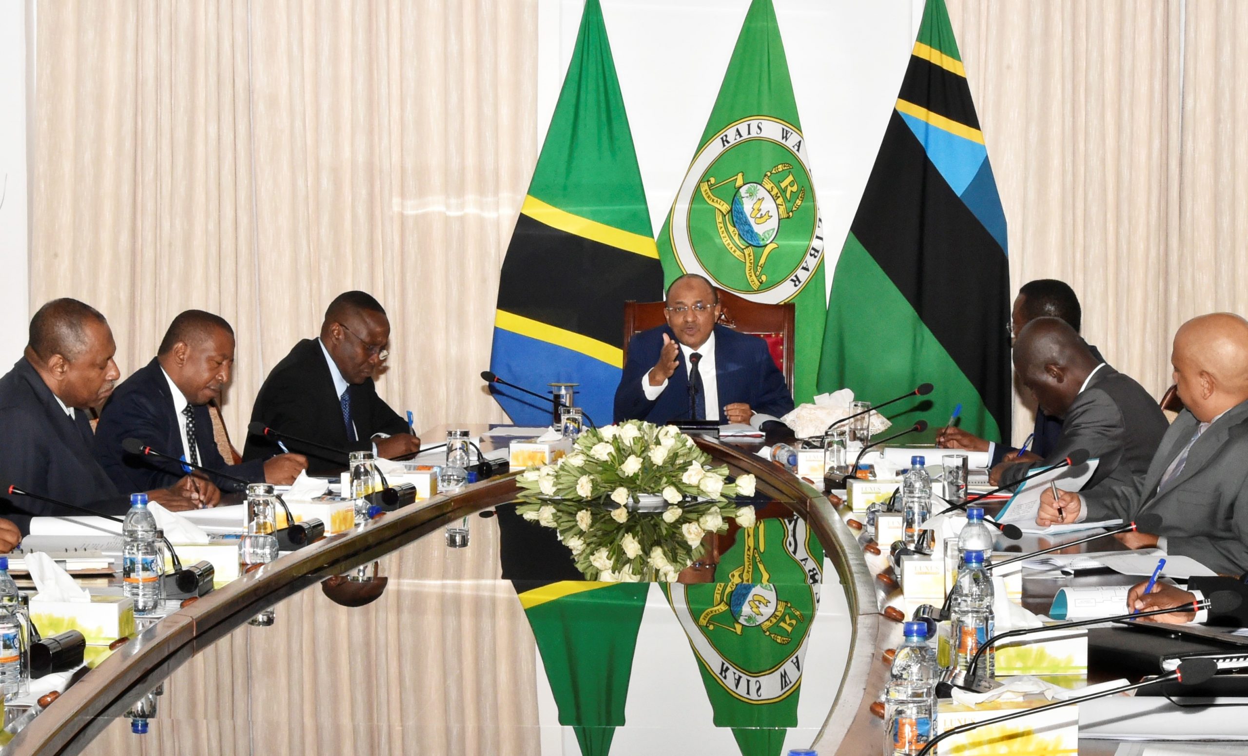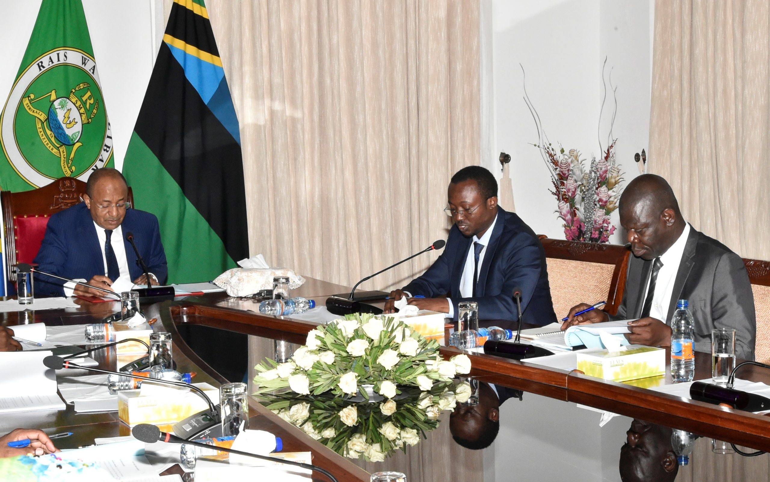 RAIS wa Zanzibar na Mwenyekiti wa Baraza la Mapinduzi Mhe.Dk. Hussein Ali Mwinyi akifuatilia taarifa ya utekelezaji wa maagizo yake kwa Mawaziri na Makatibu Wakuu aliyoyatoa wakati wa kuwaapisha katika viwanja vya Ikulu, yakiwasilishwa na Waziri wa Nchi Ofisi ya Rais Fedha na Mipango Zanzibar Mhe. Jamal Kassim Ali, wakati wa mkutano huo uliofanyika katika ukumbi wa Ikulu Jijini Zanzibar.(Picha na Ikulu)