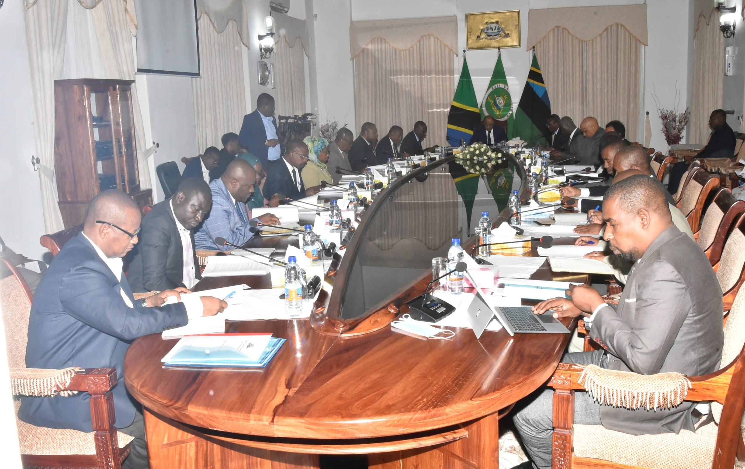 RAIS wa Zanzibar na Mwenyekiti wa Baraza la Mapinduzi Mhe.Dk. Hussein Ali Mwinyi akifuatilia taarifa ya utekelezaji wa maagizo yake kwa Mawaziri na Makatibu Wakuu aliyoyatoa wakati wa kuwaapisha katika viwanja vya Ikulu, yakiwasilishwa na Waziri wa Nchi Ofisi ya Rais Fedha na Mipango Zanzibar Mhe. Jamal Kassim Ali, wakati wa mkutano huo uliofanyika katika ukumbi wa Ikulu Jijini Zanzibar.(Picha na Ikulu)