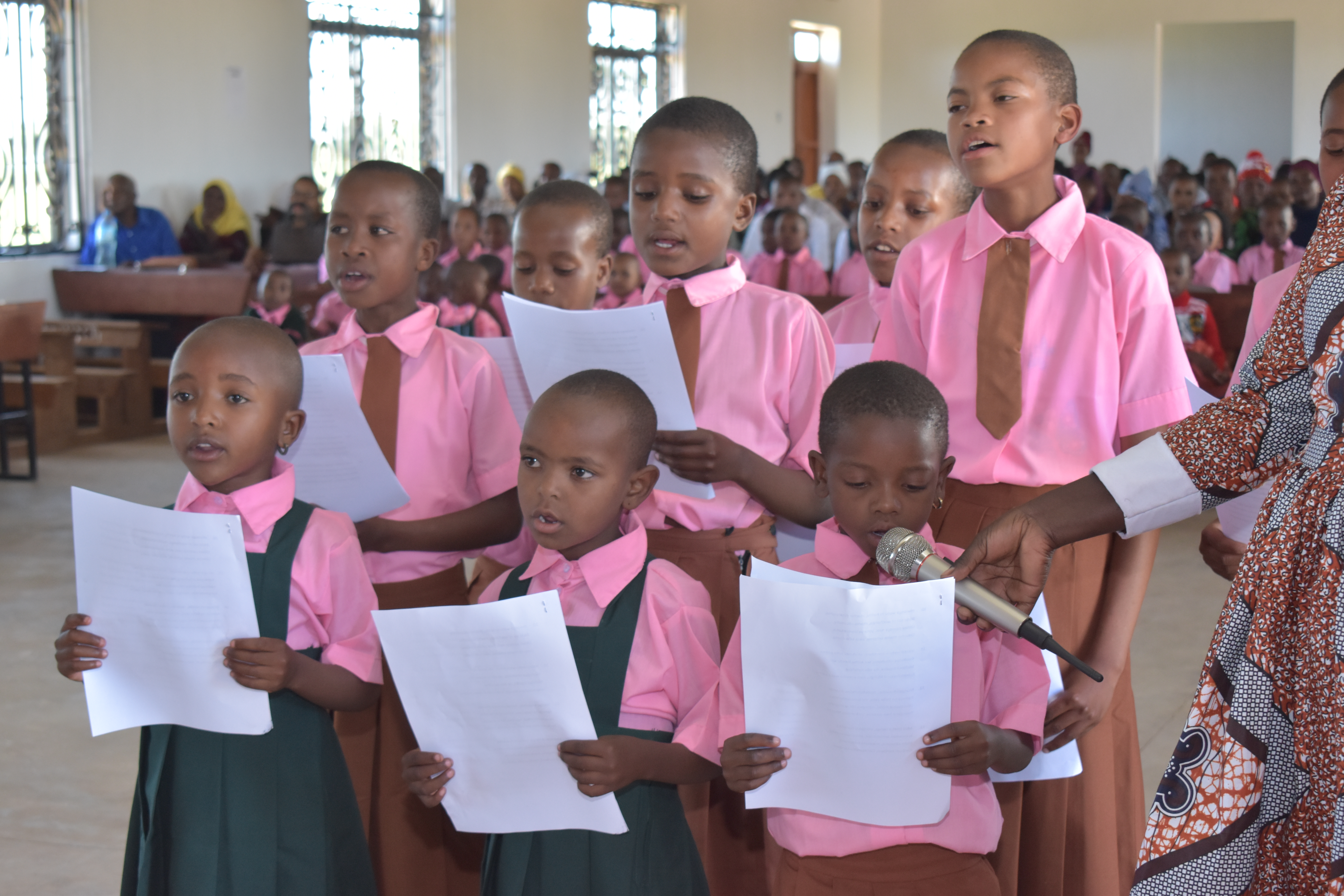 Wanafunzi wa shule hiyo wakiimba katika hafla hiyo.