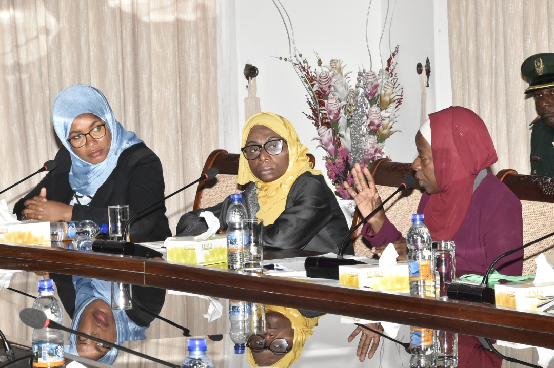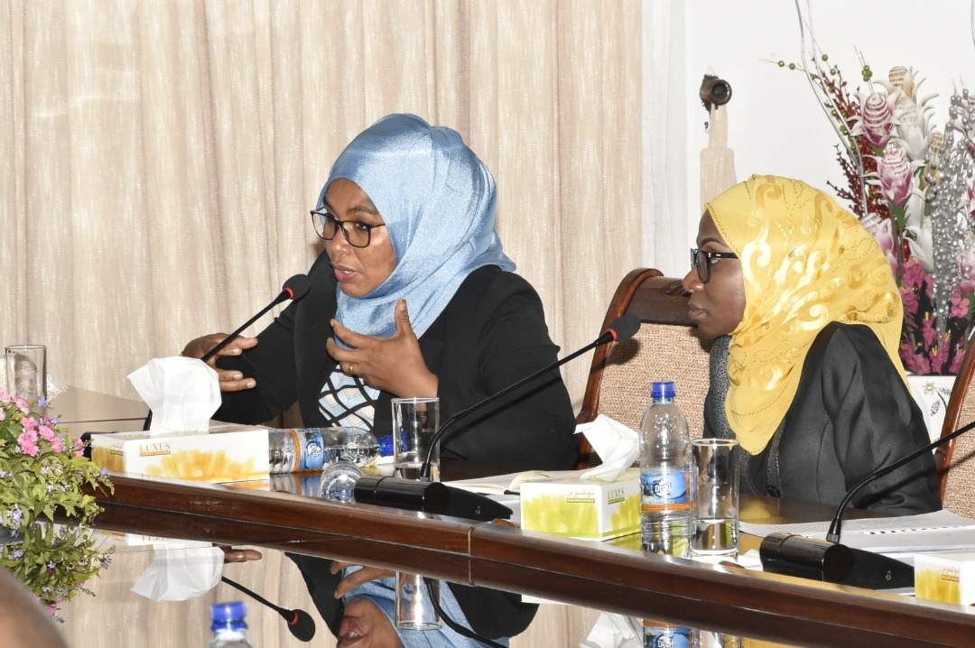 KATIBU Mkuu Wizara ya Utalii na Mambo ya Kale Zanzibar Bi. Fatma Mbarouk Khamis akizungumza na kutowa ufafanuzi wakati wa mkutano wa Rais wa Zanzibar na Mwenyekiti wa Baraza la Mapinduzi Mhe.Dk. Hussein Ali Mwinyi (hayupo pichani) akizungumza na Wafanyabishara wa Sekta ya Utalii Zanzibar, ikiwa ni muendelezo ya mikutano yake, uliofanyika katika ukumbi wa Ikulu Jijini Zanzibar na (kulia kwake) Waziri wa Utalii na Mambo ya Kale Zanzibar.Mhe Lela Mohammed Mussa na Katibu wa Baraza la Mapinduzi na Katibu Mkuu Kiongozi Mhandisi Zena Ahmed Said.(Picha na Ikulu)