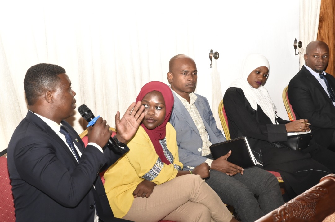 MFANYABIASHARA wa Sekta ya Watembeza Watalii Zanzibar Bw. Mohammed Salim akichangia wakati wa mkutano wao na Rais wa Zanzibar na Mwenyekiti wa Baraza la Mapinduzi Mhe. Dk. Hussein Ali Mwinyi (hayupo pichani) uliofanyika katika ukumbi wa Ikulu Jijini Zanzibar ikiwa ni muendelezo wa mikutano yake na Wafanyabiashara wa Sekta mbalimbali Zanzibar.(Picha na Ikulu)