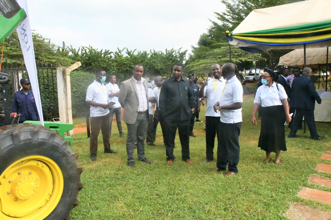 Waziri wa Kilimo Prof. Adolf Mkenda (katikati) akitazama trekta linalotumika kufundishia vijana kilimo biashara leo alipozindua mfumo wa Kizimba Business Model makao makuu ya Taasisi ya SUGECO Morogoro yenye lengo kuuunganisha vijana kufanya kilimo biashara.