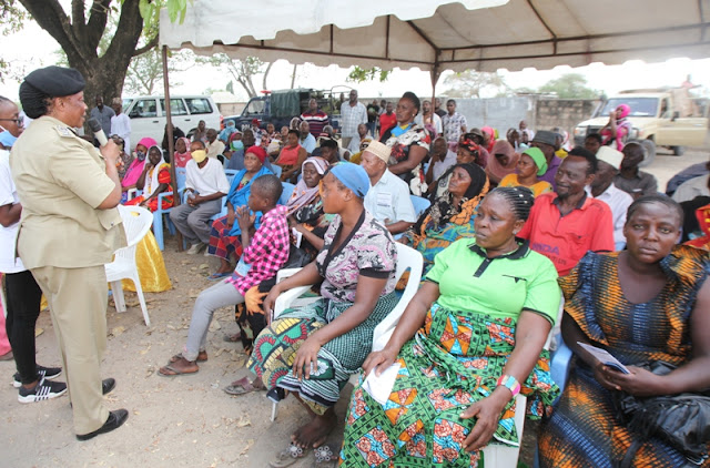 | Kamanda wa Polisi wa Mkoa wa Ilala, ACP Janeth Magomi akizungumza na baadhi ya wananchi wa eneo la Kata ya Pugu Mnadani waliofika kupata huduma anuai za ‘One Stop Center’ (OSC) eneo hilo. |