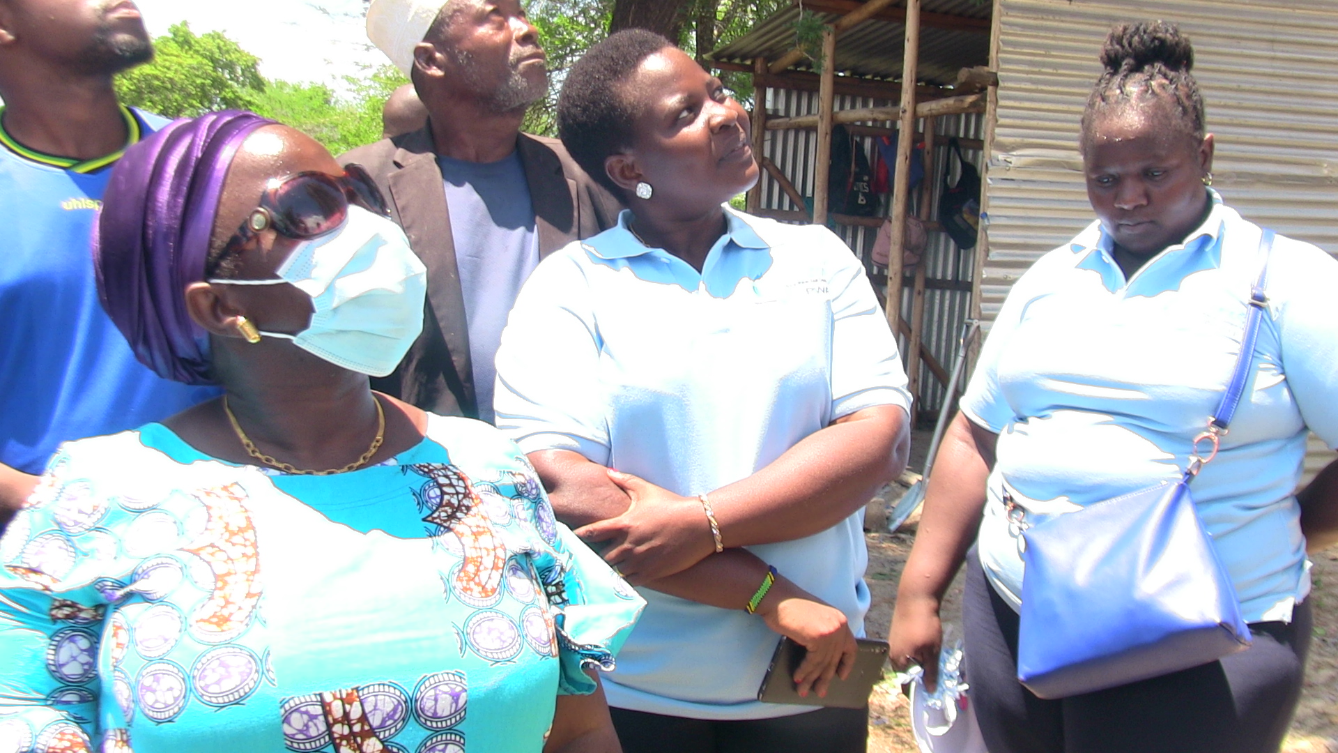 Mkuu wa Wilaya ya Bagamoyo Mh. Zainabu Kawawa wa kushoto wakiwa anatazama juu ya mnara kuangalia tanki kubwa la maji halipo pichani linalojengwa katika kitongoji cha Mtoni lenye ujazo wa lita zipatazo elfu 50 wakati alipokuwa mgeni rasmi katika uwekaji wa jiwe la msingi la mradi huo, kulia kwake ni Meneja wa Ruwasa Mkoa wa Pwani Injinia Beatrice Kazimbazi.