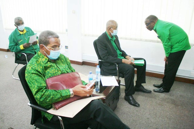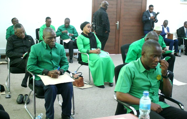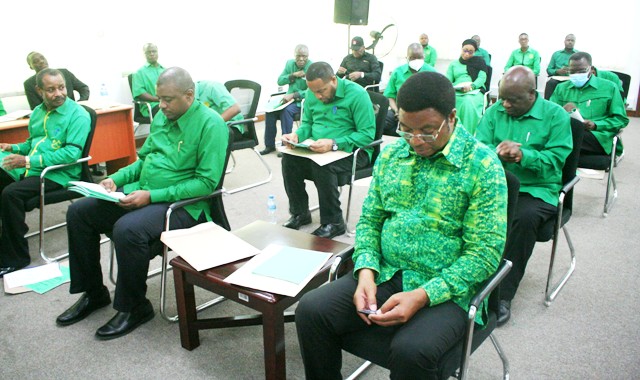 Maafisa Waandamizi wa Chama Cha Mapinduzi (CCM) Makao Makuu wakiwa kwenye kikao hicho. Kulia ni Katibu Msaidizi Mkuu Idara ya Itikadi na Uenezi Ndugu Mwansasu.
