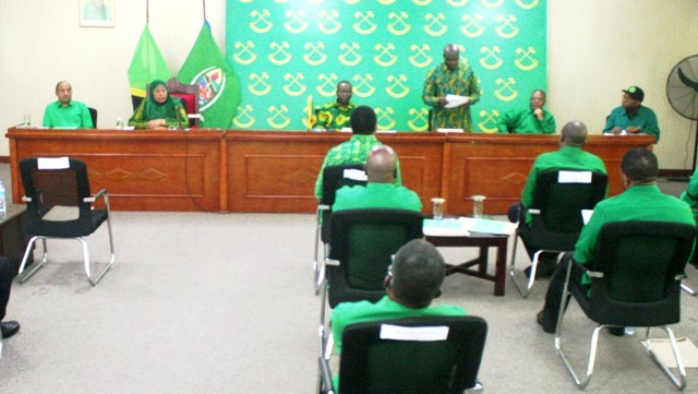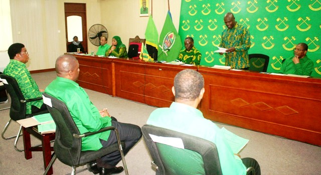 Wajumbe wakiwa ukumbini kwenye kikao hicho. Mbele ni Katibu wa NEC Oganaizesheni Pereira Silima na kulia ni Katibu wa NEC, Itikadi na Uenezi Humphrey Polepole.