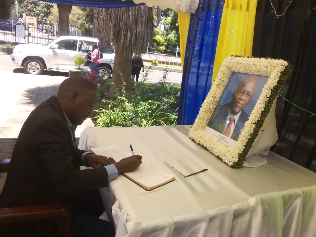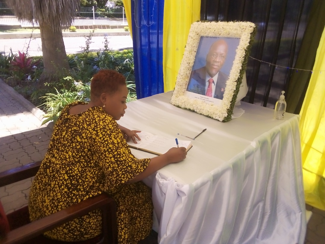 Waombolezaji wakiendelea kusaini kitabu Cha maombolezo Katika ofisi ya mkuu wa mkoa wa Arusha