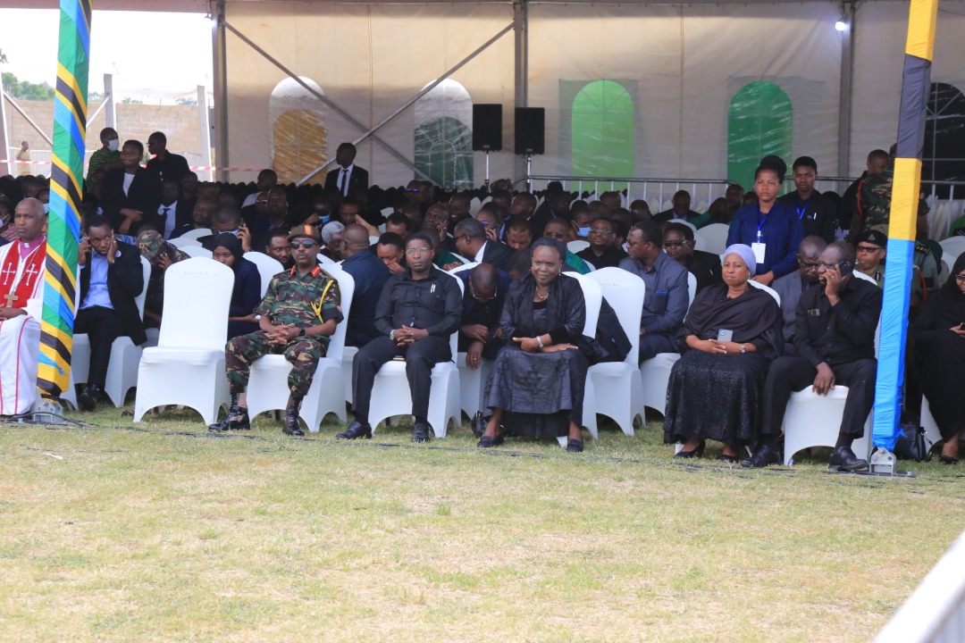 Mawaziri mbalimbali pamoja na viongozi waandamizi wa Serikali wakiwa katika uwanja wa Magufuli tayari kwa zoezi la kuaga mwili wa aliyekuwa Rais wa Tano wa Jamhuri ya Muungano wa Tanzania Hayati Dkt. John Pombe Magufuli katika uwanja wa Magufuli Chato mkoani Geita