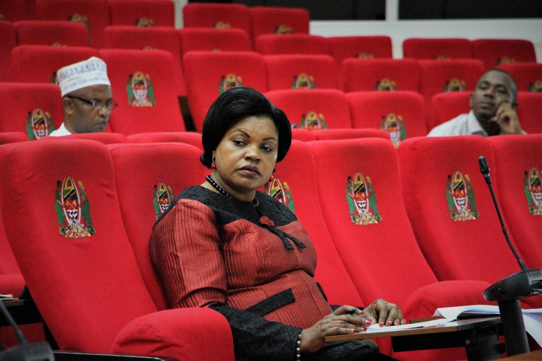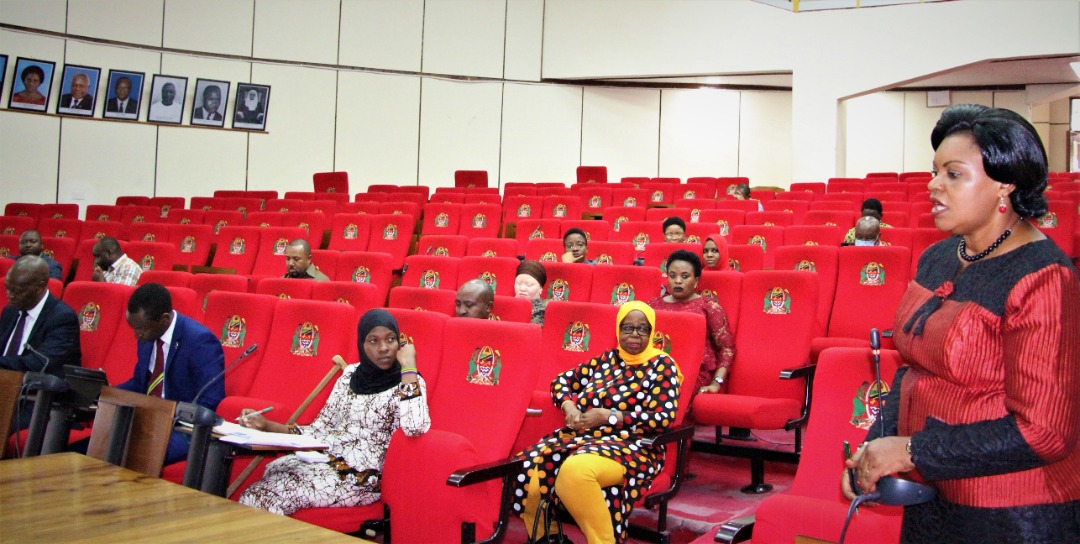 Waziri wa Nchi Ofisi ya Waziri Mkuu (Sera, Uratibu, Bunge, Kazi, Vijana, Ajira na Wenye Ulemavu), Mhe. Jenista Mhagama, akifuatilia uwasilishwaji wa mada ya kuhusu misingi ya Afya na Usalama mahali Pa Kazi wakati Kamati ya Kudumu ya Bunge ya Katiba na Sheria ilipokutana na Wakala wa Usalama na Afya Mahali pa Kazi (OSHA), leo tarehe 29 Machi, jijini Dodoma.
