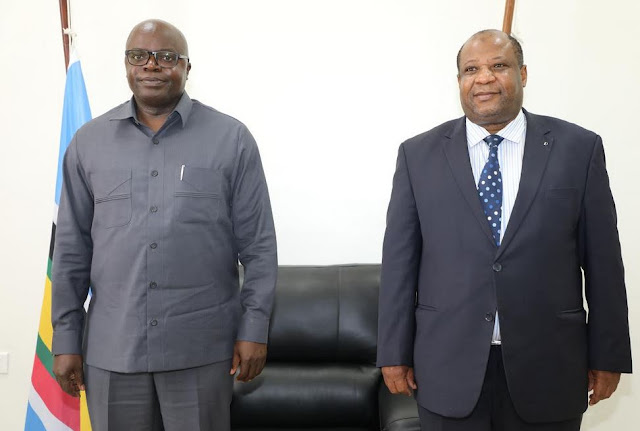 Katibu Mkuu wa Wizara ya Mambo ya Nje na Ushirikiano wa Afrika Mashariki Balozi Brigedia Jenerali Wilbert A. Ibuge na Mhe. Abdallah Abas Kilima Balozi wa Tanzania nchini Oman wakiwa kwenye mazumgumzo yaliyofanyika katika Ofisi za Wizara jijini Dodoma.