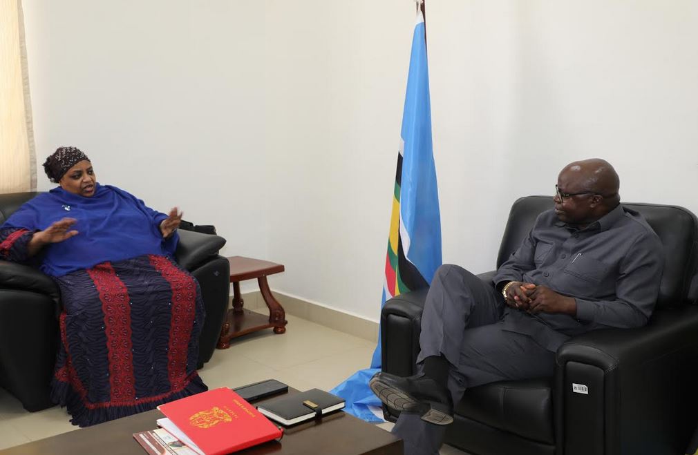 Katibu Mkuu wa Wizara ya Mambo ya Nje na Ushirikiano wa Afrika Mashariki Balozi Brigedia Jenerali Wilbert A. Ibuge na Mhe. Fatma M. Rajab Balozi wa Tanzania nchini Qatar wakiwa kwenye mazumgumzo yaliyofanyika katika Ofisi za Wizara jijini Dodoma
