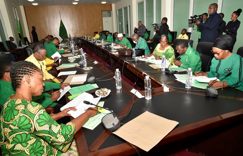 WAJUMBE wa Kamati Kuu ya Halmashauri Kuu ya CCM Taifa wakisoma makabrasha ya Kikao cha Kamati Kuu ya Halmashauri Kuu ya CCM Taifa, kabla ya kuaza kilichofanyika katika ukumbi wa Jakaya Kikwete Dodoma kilichoongozwa na Makamu Mwenyekiti wa CCM Tanzania Bara Mhe. Philip Japhet Mangula, katika ukumbi wa Jakaya Kikwete Dodoma leo 30-3-2021.