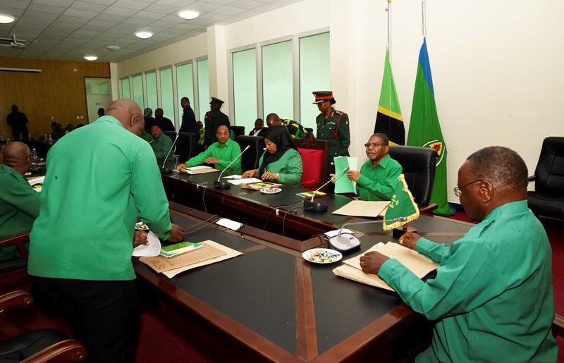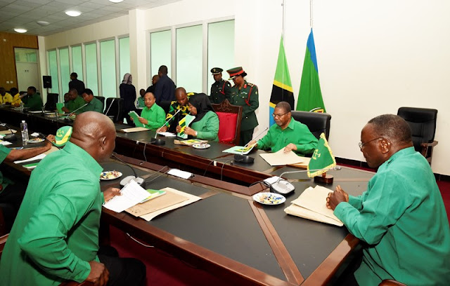 MAKAMU Mwenyekiti wa Chama Cha Mapinduzi Tanzania Bara Mhe Philiph Japhet Mangula akiongoza Kikao cha Kamati Kuu ya Halmashauri Kuu ya CCM Taifa kilichofanyika katika ukumbi wa Jakaya Kikwete Dodoma leo 30-3-2021, (kulia kwake) Makamu Mwenyekiti wa CCM Zanzibar Mhe.Dk. Ali Mohamed Shein, Mjumbe wa Kamati Kuu ya Halmashauri Kuu ya CCM Taifa ambae pia ni Rais wa Jamuhuri ya Muungano wa Tanzania Mhe. Samia Suluhu Hassan na Mjumbe wa Kamati Kuu ya Halmashauri Kuu ya CCM Taifa ambae pia ni Rais wa Zanzibar na Mwenyekiti wa Baraza la Mapinduzi Mhe.Dk. Hussein Ali Mwinyi.(Picha na Ikulu)