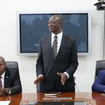 Naibu wake Mhe. Pauline Gekul, kulia ni Katibu Mkuu na Msemaji Mkuu wa